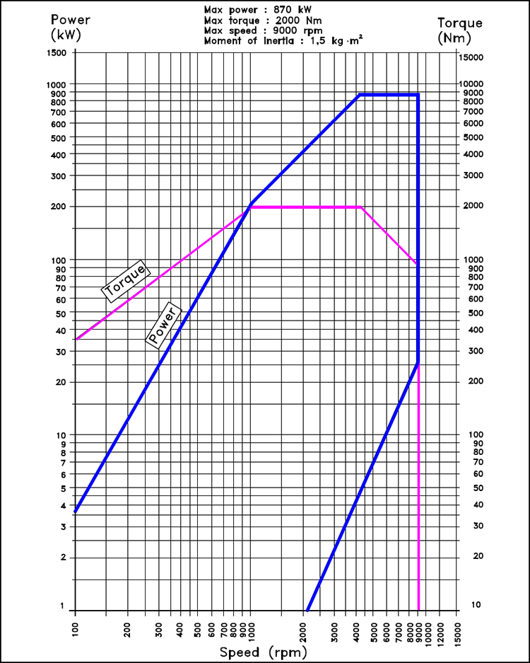 高速大功率電渦流測功機,主要用于軍品試驗,例如測試航空渦輪軸、渦輪槳發動機的轉速扭矩功率。